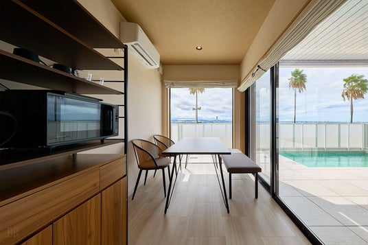 大阪市内から車で約1時間という好アクセスながら、「白砂青松100選」や「日本の夕日百選」に選ばれた二色の浜公園内に立地。都会の喧騒から離れ、美しい海と夕景に包まれる穏やかなリゾートエリアで、まるで“海外ビーチリゾート”に来たような非日常を体験できます。