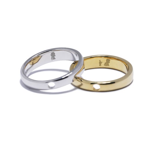 ラプンツェルは特徴的な髪の毛を三つ編みにしたベビーリング。フリンは思い入れの深い、ラプンツェル愛用のフライパンがモチーフ。