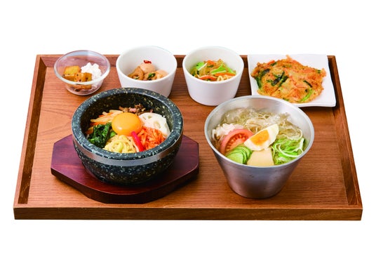 熱々の石焼ビビンバと、さっぱり冷麺を一度に楽しめる定番人気セット。