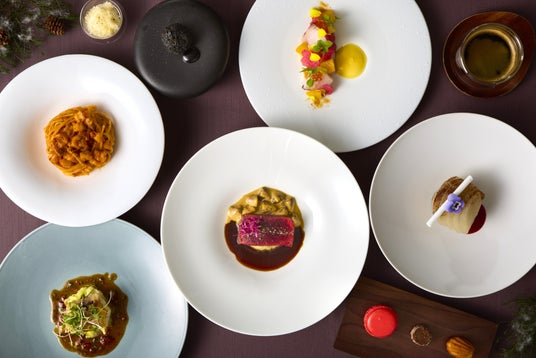 冬を彩るイタリアンコース 「Festa Italiana - Inverno -」冬空を眺めながら、繊細で洗練された一皿一皿を目でも味でも愉しめるイタリアンコース。鹿のローストをメインに、寒ブリや冬キャベツなど冬の旬の美味しさをゆったり存分にご堪能いただけます。(ランチ:6,380円 税込 / ディナー:9,900 税込)