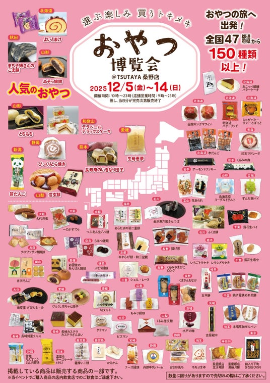 また、全国のご当地おやつを集めたイベント『おやつ博覧会』を「TSUTAYA 桑野店」(福島県郡山市)で12月5日(金)より開催します。