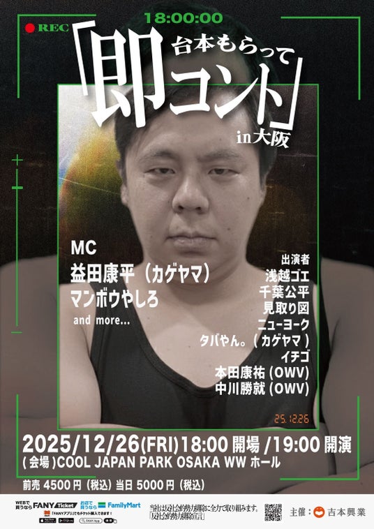12月26日(金)にCOOL JAPAN PARK OSAKA WWホールにて「即コントin大阪」を開催します。
