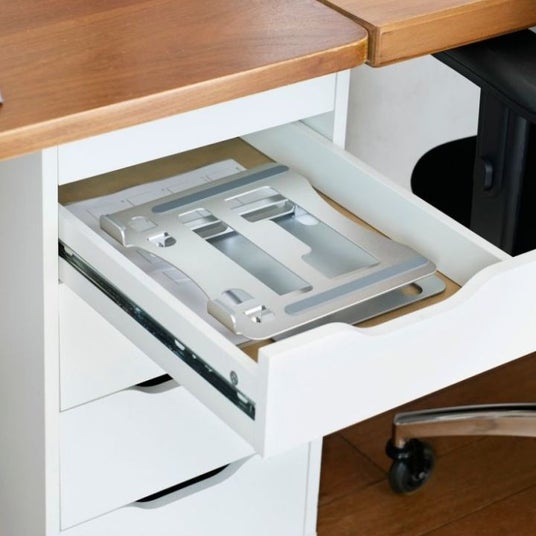 - ノートパソコンの高さを変えることで目線を上げることができ、作業中の姿勢を改善します。
