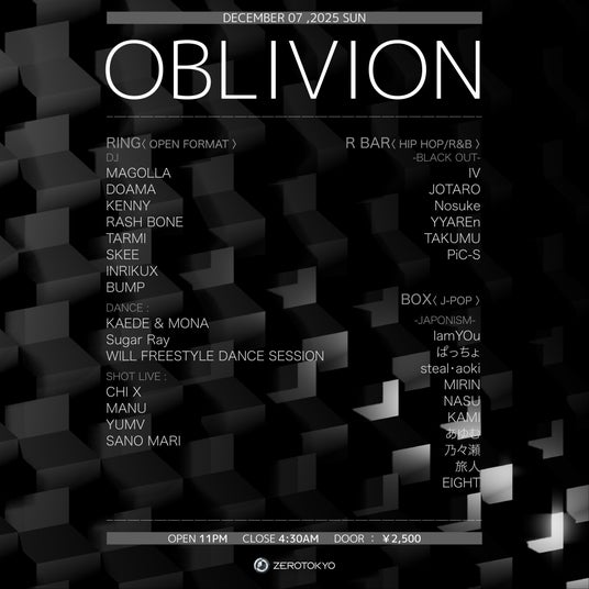 HP:https://zerotokyo.jp/event/oblivion1207/