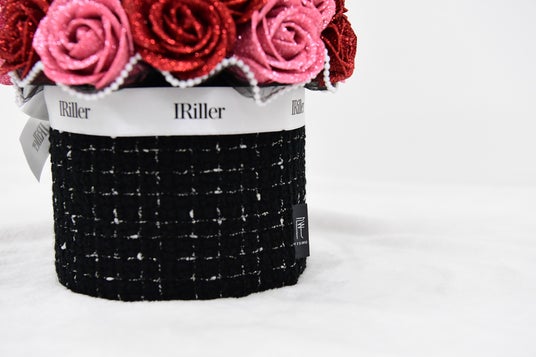 IRiller(アイリエ)の象徴的なアイテムが、さまざまなカラーのグリッターローズを立体的に束ねた尾州ツイードボウルブーケ です。