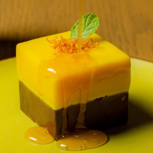 冬の旬フルーツ、タンカンを贅沢に使ったムースです。爽やかな甘みのタンカンと、ダークチョコのほろ苦さが絶妙に重なり合い、口の中で濃厚さとフレッシュさが同時に広がります。見た目も華やかで、バレンタインや特別なひとときにぴったりの一品です。タンカンソースをかけて味の変化もお楽しみいただけます。