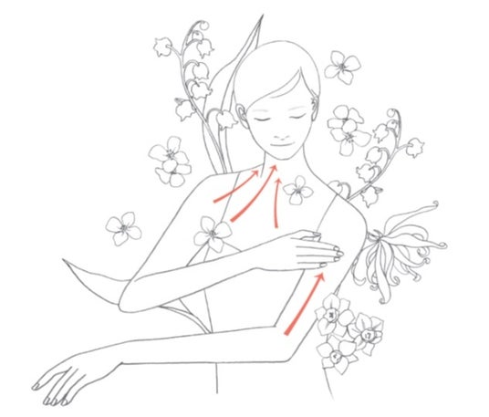 ●人肌に温めてから深呼吸と共に香りをかぎながらゆっくりとなじませます。