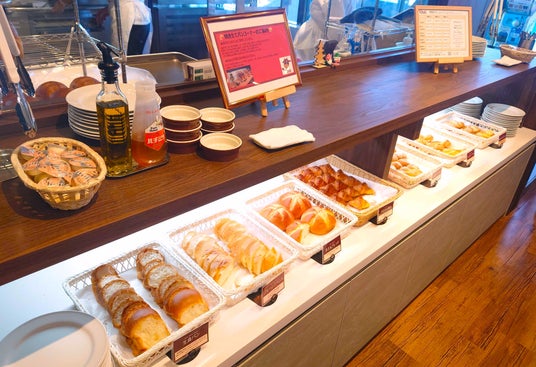 店内のオーブンで焼き上げられた7種類のパンはお食事と相性の良い定番パンから、甘みのあるパンまで個性豊かなラインナップ。所沢店限定でホイップバターの他、オリーブオイルやはちみつをご用意しております。様々な味わいで焼きたてパンをお楽しみください。