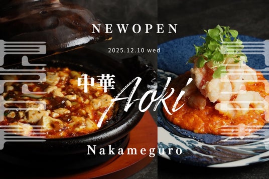 株式会社そら(本社:東京都渋谷区)は、2025年12月10日(水)、中華Aokiブランド2店舗目となる、「中華Aoki 中目黒(ちゅうかあおき・なかめぐろ)」を目黒区上目黒にオープンいたします。