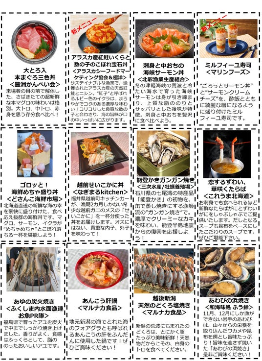 ※出店店舗、メニューは変更になる可能性があります。水揚げ状況等によっては産地や食材が変わる可能性があります。