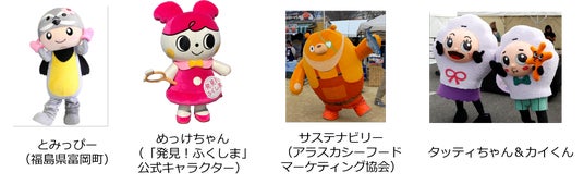 イベント会場には福島県各地のご当地&マスコットキャラクターたちが登場し、イベントを盛り上げます。会期中は会場を歩いたり、それぞれのブースで料理を売り込んだり、ステージにも登場します。