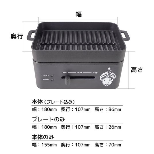 本体のヒーターユニットと取り外し可能なプレートで構成。