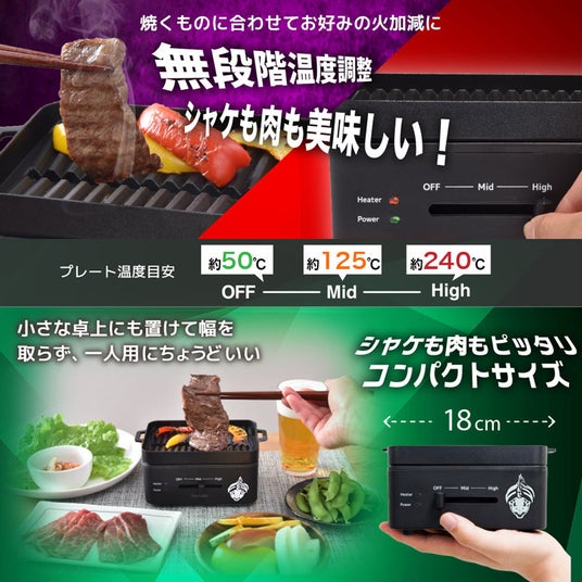 本体サイズは幅18×高さ10.7×奥行8.6cmで、シャケを焼くのにぴったりなコンパクトサイズです。