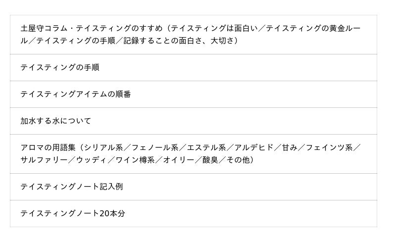 このノートは、同社が主宰するウイスキーコニサー資格認定試験や東京ウイスキー&スピリッツコンペティションで収集したテイスティングの知識や技術に基づき、まとめたノートとなっています。