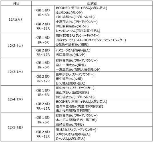 そのほか、12月1日(月)には、タレントのふじポンさん、12月2日(火)には、STARDOMのインテリジェントモンスター刀羅ナツコさん、12月3日(水)には、女優の田中道子さんが登場!!連日豪華ゲストでお届けする「ウマきゅん」をどうぞご覧ください!
