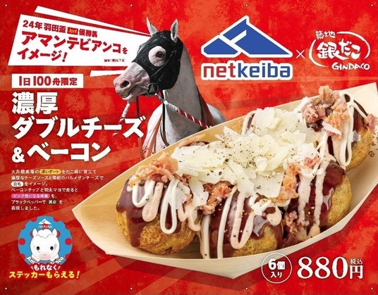 大井競馬場内「築地銀だこ」にて、netkeibaとのコラボ企画を12月1日(日)より期間限定で実施いたします。期間中は、2024年羽田盃優勝馬「アマンテビアンコ」をイメージしたコラボメニューを販売いたします。さらに、コラボメニューをご購入いただいたお客様には、「アマンテビアンコ」オリジナルステッカーをプレゼント!