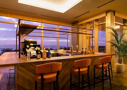 ソファーでゆったりと寛ぎながら、青く輝く圧巻のオーシャンビューや水平線に沈む夕日の絶景、そして夜空に瞬く満天の星を眺めることができるロビーラウンジ&バー「ハナリ」。コーヒーや紅茶、カクテルなどのアルコール類も取り揃えています。大切な方や友人との気軽なティータイムや、ロマンチックなバータイムにぜひご利用ください。