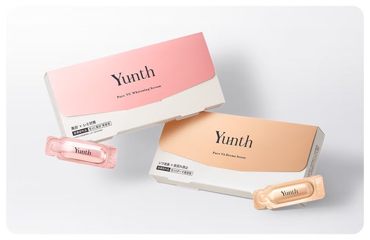 累計販売実績650万個以上*¹の販売実績を誇るYunthブランドの代表アイテム。生ビタミンC*²を独自処方で閉じ込めた「使用期限30秒*³」の導入美容液です。いつでも新鮮な状態で使える個包装パッケージ、高保湿でありながらもベタつかないトロッとしたテクスチャー、有効成分アスコルビン酸(純粋ビタミンC)がメラニンの生成を抑え、しみ・そばかすを防ぎます。
