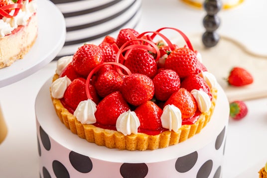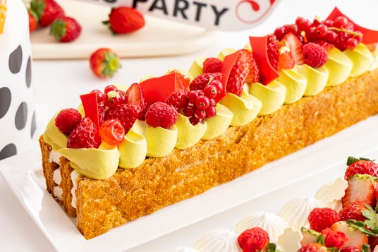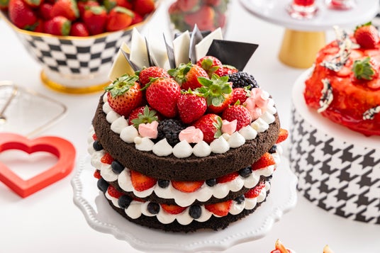 毎年フェアで一番人気のストロベリータルトは、アーモンドタルトにさっぱりとしたライムとレモンのクリームを重ね、艶々の大粒苺を贅沢にトッピング。カスタードのコクと生クリームの軽さが調和したディプロマットクリームを用いることで、甘さと酸味のバランスを引き立てます。断面やトッピングが華やかなオープンサンドケーキ「ストロベリー・ブラックドレス」は、ココアスポンジにコーヒーシロップを染み込ませ、マスカルポーネクリームと苺、ブルーベリー、ブラックベリーを重ねたティラミス風でご用意します。苺とクリーム、そしてほのかなコーヒーの苦みが絶妙に重なり、上品な大人のショートケーキをお楽しみいただけます。