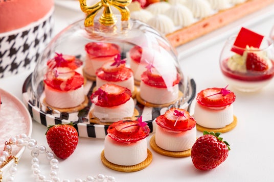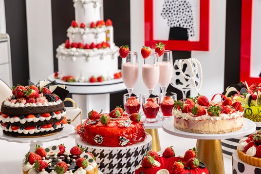 ヒルトン東京ペストリーチームが手掛ける20種類以上のいちごスイーツは、タルトやチーズケーキ、パイなど苺の美味しさを多彩に味わえる新作スイーツが揃います。ファッションやモノクロ要素もふんだんに取り入れた華やかなストロベリーケーキに加え、スモールポーションのプチガトーやグラススイーツも多数ご用意。さらにフレッシュ苺もお好きなだけお楽しみいただけるなど、まさに苺の祭典にふさわしい内容となっています。甘酸っぱい苺の香りに包まれながら至福のストロベリースイーツタイムをお過ごしいただけます。