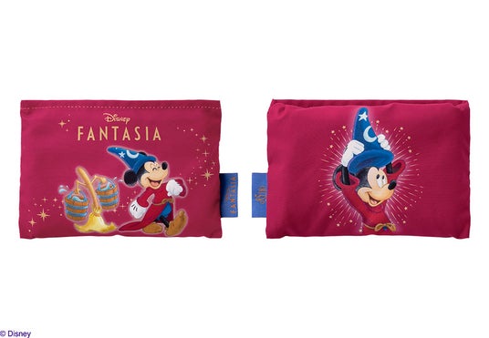 夜空のような深いネイビーと、「ミッキーマウス」が身に着けるローブのような赤が大人可愛いエコバッグ。小さく折りたたんで、いつでも持ち歩いてくださいね。