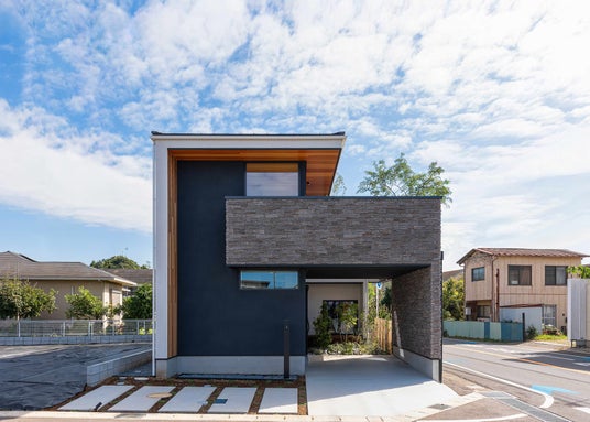 生実町という場所が少し喧騒とした街から離れ、緑も豊かな落ち着いた街並みでしたので、その雰囲気に合うように「モダンの中に落ち着きが生まれる住まい」を意識して設計しました。外観は、軒天と屋根の破風に木目を採り入れ、2階LDKの勾配天井も木目のクロスにすることで木の雰囲気が漂う落ち着いた住まいにしました。2階はLDKと水廻り、バルコニーがあり、コンパクトながらも開放的で住み心地が良くなるよう、回遊動線や各スペース同士のつながり、視線の流れなどを意識して設計しております。また夜になるとあえて光を通常よりも抑えて“ほんのり明るい、落ち着いた時間” を過ごせるのもこの家の魅力です。セミオーダーだからこそ実現できる“ちょうどいい住まい”を、ぜひ体感していただきたいです。