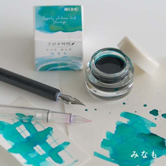 描くたびに色がゆらぐ、色割れを楽しむ水性染料インク「てがき時間インク ゆらぎ」をブースで先行販売します