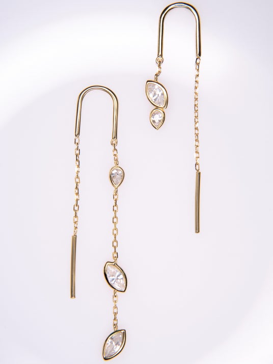 左から)SWIFT EARRING GOLD(SV925、18Kイエローゴールドプレート・ジルコニア)13,200円、(SV925、18Kイエローゴールドプレート・ジルコニア)11,000円
