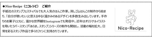 手帳づくりのノウハウを生かしたNOLTYノートと、はんこ作家・Nico-Recipe(ニコレシピ)さんのコラボレーションシリーズ。どこかやさしく、楽しいデザインで「書く時間」をもっとワクワクさせてくれます。シールや付箋など、彩りを添えるデコアイテムもご用意。手帳と組み合わせて使うのもおすすめです。