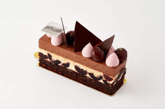 ドイツの伝統菓子フォレノワールをル・パン風にアレンジした一品です。チョコレートのムース、チェリーの洋酒漬けを入れたキルシュ酒風味のババロワ、チョコレート生地を重ねました。洋酒の風味が広がる大人向けのスイーツです。