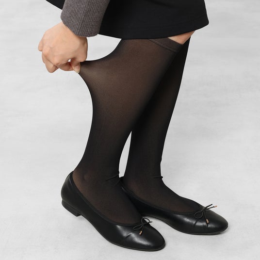 タイツの重い印象を変える!しっかり防寒しつつも、透け感でほっそり美脚を演出