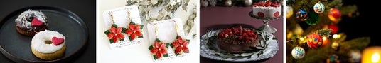 ▲(左)クリエイター:花のささやき 藍染和紙のLEDキャンドル「星降る街」(中央)クリエイター:Deuxieme(ドゥズィエム) 植物で彩られたクリスマスギフト(右)クリエイター:Maple Raw 身体に優しいご褒美スイーツ