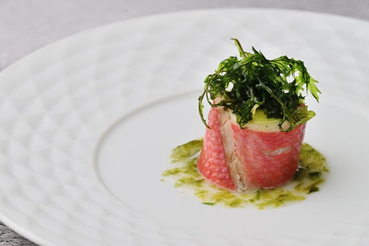 ふんわり蒸しあげた金目鯛を青のりが香るソー