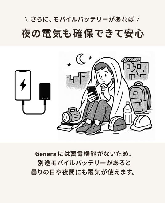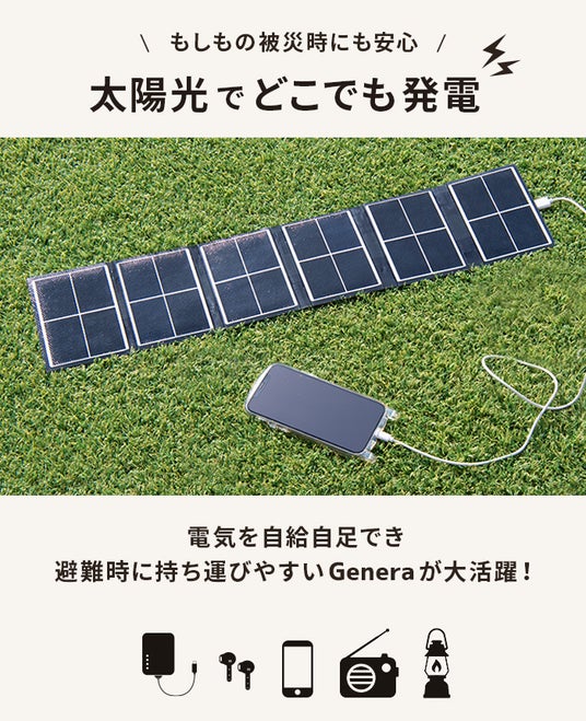 【新発売】太陽光でどこでも発電!ポケット発電機Genera(ジェネラ) 自給自足できる備えで本当の安心を