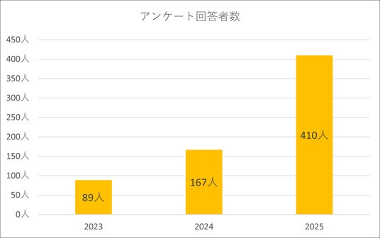 2023年より2会場・参画団体11団体でスタートした本イベントは、2024年に3会場・13団体、2025年に4会場・21団体と拡大。また、回答任意による来場者アンケートの集計数も2023年89名、2024年167名、2025年は410名と参画団体及び来場者数共に広がりを見せています。