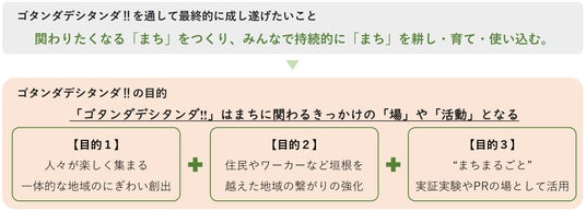 本イベントは、まちに関わるきっかけの「場」や「活動」となることで、1.にぎわいの創出、2.住民やワーカーなどの垣根を越えた地域のつながりの強化、3.“まちまるごと”活用、の3点を目的に、多くの人が持続的に「まち」に関わることを目指す取り組みです。