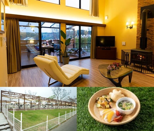 ネスタリゾート神戸では、愛犬と一緒にご宿泊いただける施設をご用意しております。大自然に囲まれたドッグランで思いっきり遊んだ後は、シェフが健康に配慮して調理する愛犬専用の特製ディナーメニューや、バースデーケーキで特別なひとときをお過ごしいただけます。愛犬専用ディナーメニューは4日前までの要予約制となります。詳しくは右記URLをご参照ください。https://nesta.co.jp/hotel