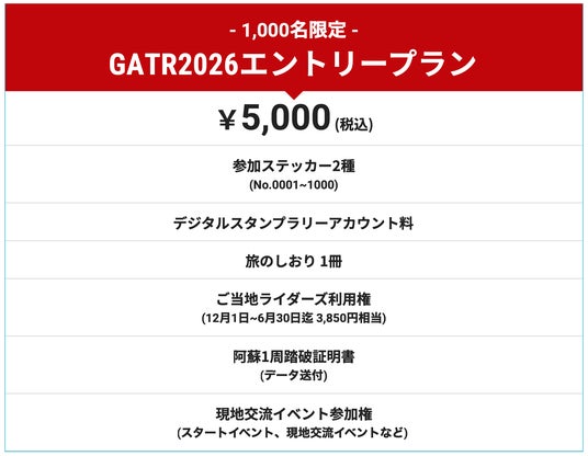 お申し込みの際は【エントリー】GATR2026エントリープラン&BSTR2026エントリープラン(各先着1,000名限定)からお申し込みください。