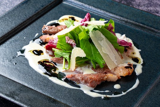 柔らかな十勝若牛を焼き上げ濃厚なチーズソースで仕上げた贅沢タリアータ。