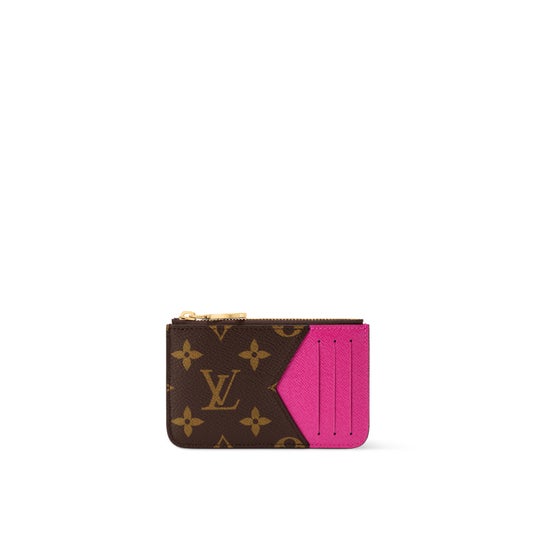 今シーズン、鮮やかなフローズンオーキッドカラーのグレインレザーライニングでアップデートされた定番の「カードケース ポルト カルト・ロミー」。シグネチャーのモノグラム・キャンバスにゴールドカラーの金具をあしらい、3つのカードスロットを備えています。コンパクトなデザインながら、2つのポケットを配し、そのうち1つはコインを安全に保管できるファスナー付きです。