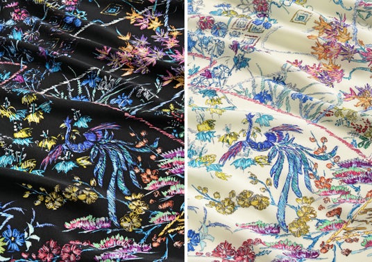 着物と同じ手描き友禅・刺繍などを用いたハイエンドなラインの「KIMONO GOWN Ultimate」と、千總のアーカイブや自然からのインスピレーションを受けて描かれたデザインが特徴の「KIMONO
