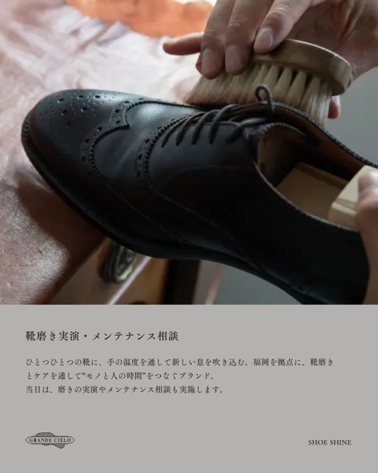 本イベントは、博多織のワークショップや靴磨き実演、福岡を拠点とするブランドの展示販売を通して、“長く使うほど味わいが深まるもの”の魅力を伝える場として企画しました。