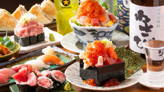 本格寿司と海鮮が気軽に楽しめる「すしわさび」。こだわりの本鮪や市場直送の鮮魚を使用した握り寿司が、1貫100円からとリーズナブルな価格でお楽しみいただけます。