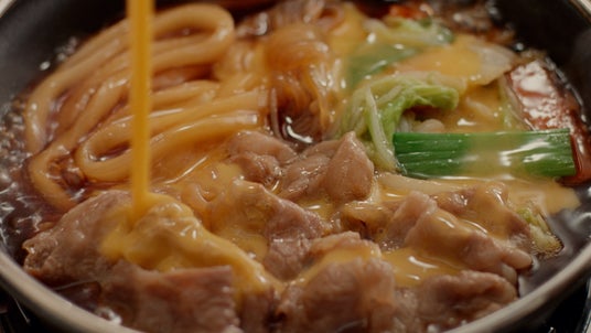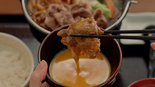 牛肉や、1日の摂取目安の半量が摂れる野菜※1、うどんなどのたっぷりの具材をご堪能いただけます。特製の割り下がしみ込んだ柔らかな牛肉や白菜、白滝を一口頬張ると、口いっぱいに旨みが広がります。セットで付いてくるたまごは、溶き卵にして具材と合わせたり、鍋に回し入れて卵とじにしたり、お好みの食べ方でお楽しみください。