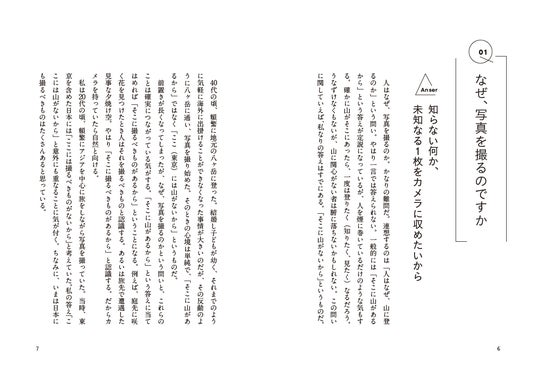 本書は、写真家としてだけでなく、東京工芸大学教授やノンフィクション作家としても多角的な視点から写真と向き合い続けている小林氏が写真に関して誰もが一度は抱く疑問や悩みに対し、答えていくスタイルを採用。回答は小林氏の実体験がベースになっており、具体的で深く納得できる内容となっています。構成は1つのテーマごとに完結するQ&Aスタイル。最初から読み進めるのはもちろん、目次を見て気になったページから自由に拾い読みすることも可能です。写真家として、また写真教育者として第一線で活躍する小林氏が、写真とどう向き合い、何を考えているのか。その核心に触れることができる読み応えのある文章に加え、2つの作品も収録。あわせて楽しめる内容になっています。
