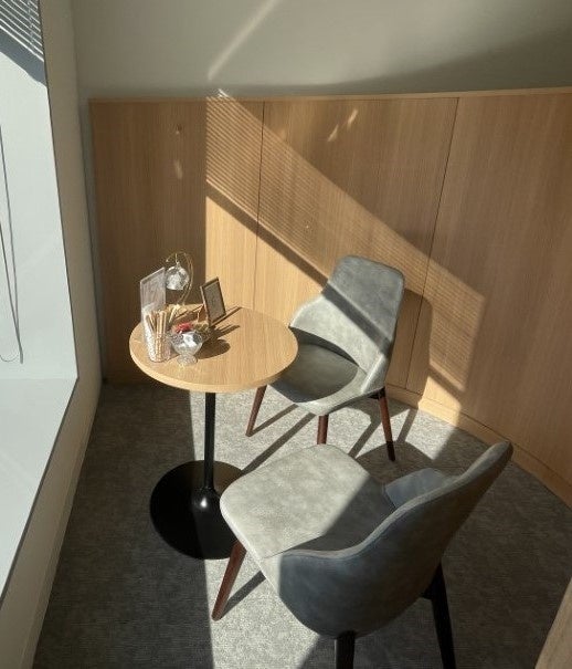 1対1の出会いに最適化した設計に改装。木目パネルによる柔らかな仕切りと自然光を取り入れた明るい空間により、初対面でも緊張が和らぎ、自然に会話が弾む環境を整えました。