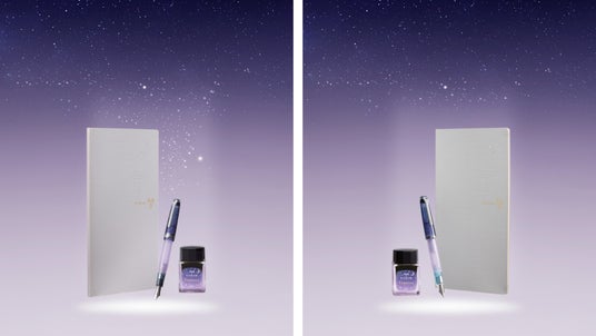 ノートには、黄昏の空にほのかに輝く月と星の箔押しを施しました。また、インクカラーは幻想的な夢の世界をイメージした淡いパープルカラー「Yumeyoi」を新たに調色。ギフトボックスも“夢宵”を連想させるシックなパープルカラーでまとめています。まだ目覚めの記憶が残る夢うつつの中、宵のひとときを楽しんでいただける幻想的なステーショナリーセットです。