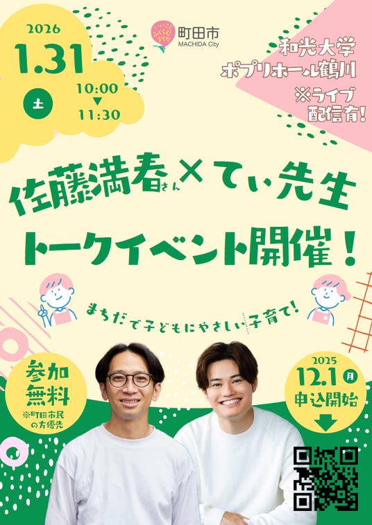 【東京都町田市】「佐藤満春さん×てぃ先生 トークイベント~まちだで子どもにやさしい子育て!~」を開催します