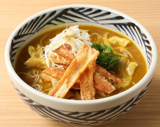 ボリューム満点のそばに絡みつく、出汁の旨みが凝縮された濃厚カレーソース。さらにサクサクのごぼうチップスと香り高いスパイスが食感と香りのアクセントに。