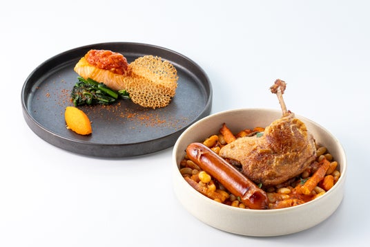 また、第一部・第二部(11:30~/13:30~)ではケーキスタンドに加え、じっくりと火入れした鴨のモモ肉と白インゲン、ベーコン、コーンをトマトベースで煮込んだ「カスレ」または、低温調理したサーモンに赤パプリカとトマトをじっくりと煮こんで素材そのものの旨味を引き出したソースをあしらった「サーモンピペラード」からお好きなメインディッシュをお選びいただけます。第三部(15:30~)では、ケーキスタンドに加えスイーツのワゴンサービスが登場。「レモンいちごタルト」、「いちごバスクチーズケーキ」や定番の「いちごのショートケーキ」、「マカロン」、「クッキー」、「カヌレ」の計6種のスイーツが並び、お好きなスイーツをお好きなだけご堪能いただけます。